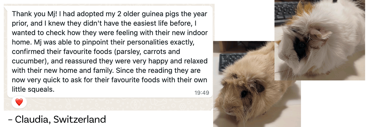 I adore connecting with your pet’s beautiful energy and sharing the insights they want you to know. I’ve read for cats, dogs, rabbits, guinea pigs, and birds ~ each with their own unique personality, quirks, and messages just waiting to be heard.